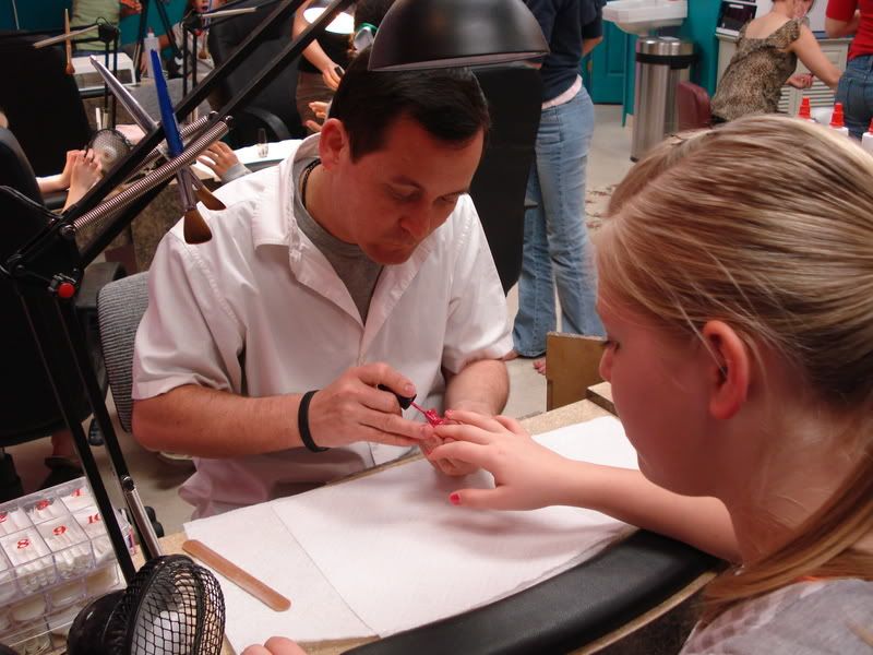 Now, tonight, we all get to show off our nails at "Party on the Go"! Special thanks to Mr. Johnathan/Happy Nails and Scoop N' Doo's for making our night so cool! You guys rock!!! Can't wait to see everyone again tonight! I guess I better clear out my camera for a new set of photos... :)