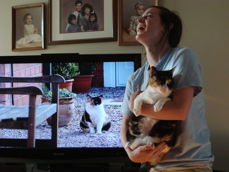 that's what we thought too. Micki completely took one for the blog! Right before I snapped this picture, Patches BIT her on the arm!! Patches is trying to look innocent right after, but she's guilty. Gotta love Patches!